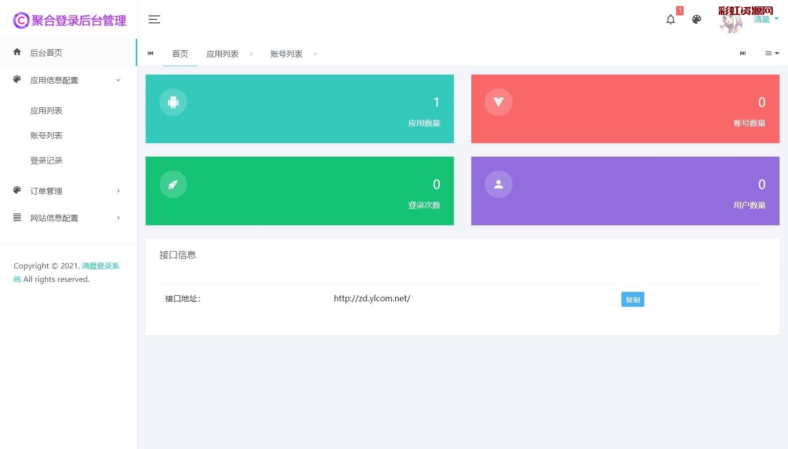 安装好进入后台【后台账号admin,密码123456】以后去对接云端