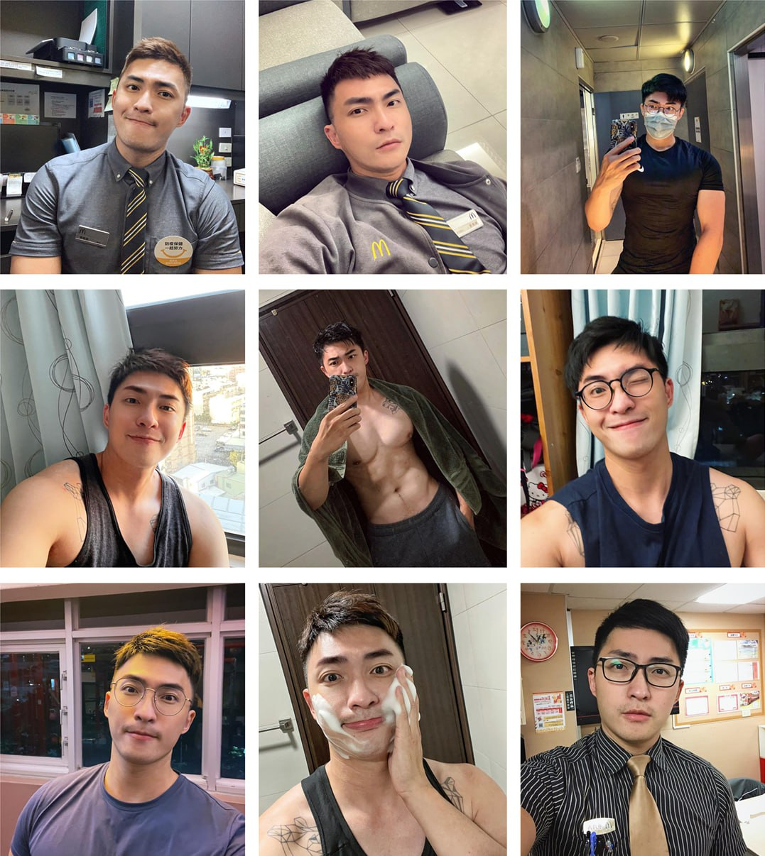 属*:台湾 男子 在 麦当劳 工作 日常 健身 养猫