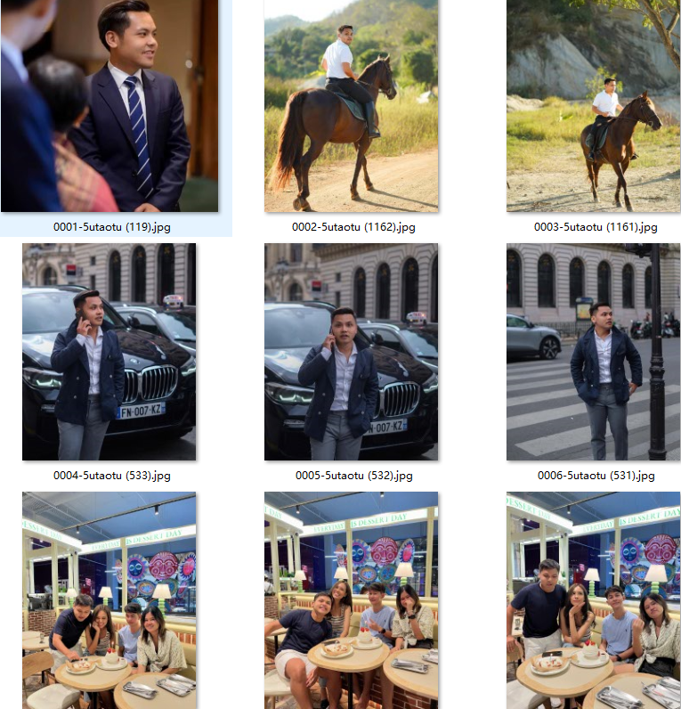 | 属*:曝光量特地,泰国私有银行高管,工作背景丰富,部分与同事写真照合拍。注:人物身高较矮,部分法国/瑞士旅行照,其他生活场景比较全面,较多与亲友互动合拍 | |||